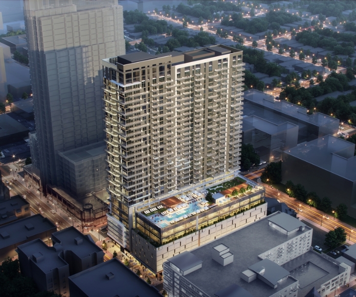 Mixed-use apartment rental development with expansive community space, office, and retail, developed by a leading US firm
